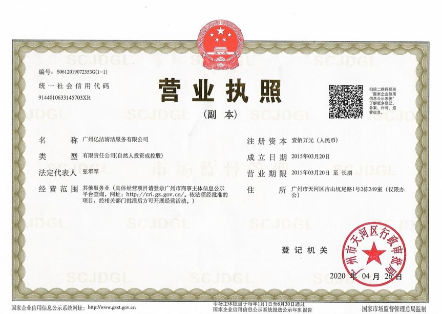 廣州億潔清潔服務有限公司是經廣州市工商行政管理局批準成立的(注冊資本:100萬元人民幣)。具有獨立法人資質。公司成立2015年,公司具備完善的管理體系和高素質管理隊伍,擁有特種技術人員33名,保潔服務人員上萬名,覆蓋廣州市,能及時調配并快速投入高效運行。我們的每個員工都經過公司的嚴格篩選,嚴格培訓,定期培訓后持證上崗以保證服務品質,保障客戶的權利,利益,形象等不受損失。 廣州億潔清潔公司是一家設備齊全,技術強大的綜合型清潔服務公司,為客戶提供完善服務尊定了堅定的基礎。 司于2010年全面推行了ISO9001質量管理體系認證和ISO14001國際環保體系認證。先后獲得廣州高層建筑外墻清洗維修作業【安全資質證書】、【廣州環衛企業等級證書C級資質】、廣州疾控中心頒發的【四害消殺服務資質證】、【空氣治理A級資質】、中國石材協會頒發的【石材資質B級資質】等。 廣州億潔清潔服務有限公司致力于打造專業、實惠、靠譜的保潔服務公司,把專業的事情交給專業的我們,您放心! 億潔清潔服務項目: 廣州保潔服務:新建樓宇、別墅、酒店、醫院、辦公樓、賓館、企事業單位廠房竣工后開荒及裝修后精細保潔.工程保潔服務。 廣州物業托管:為廣州市各大企事業單位、賓館、政府機關、小區物業、酒店及廠房提供專業化保潔、園林、設施維護等管理服務。 廣州高空作業:高空玻璃幕...[詳情]